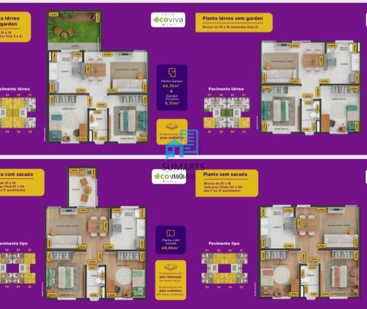 - Planta com ou sem sacada, opção de 1 ou 2 vagas na garagem