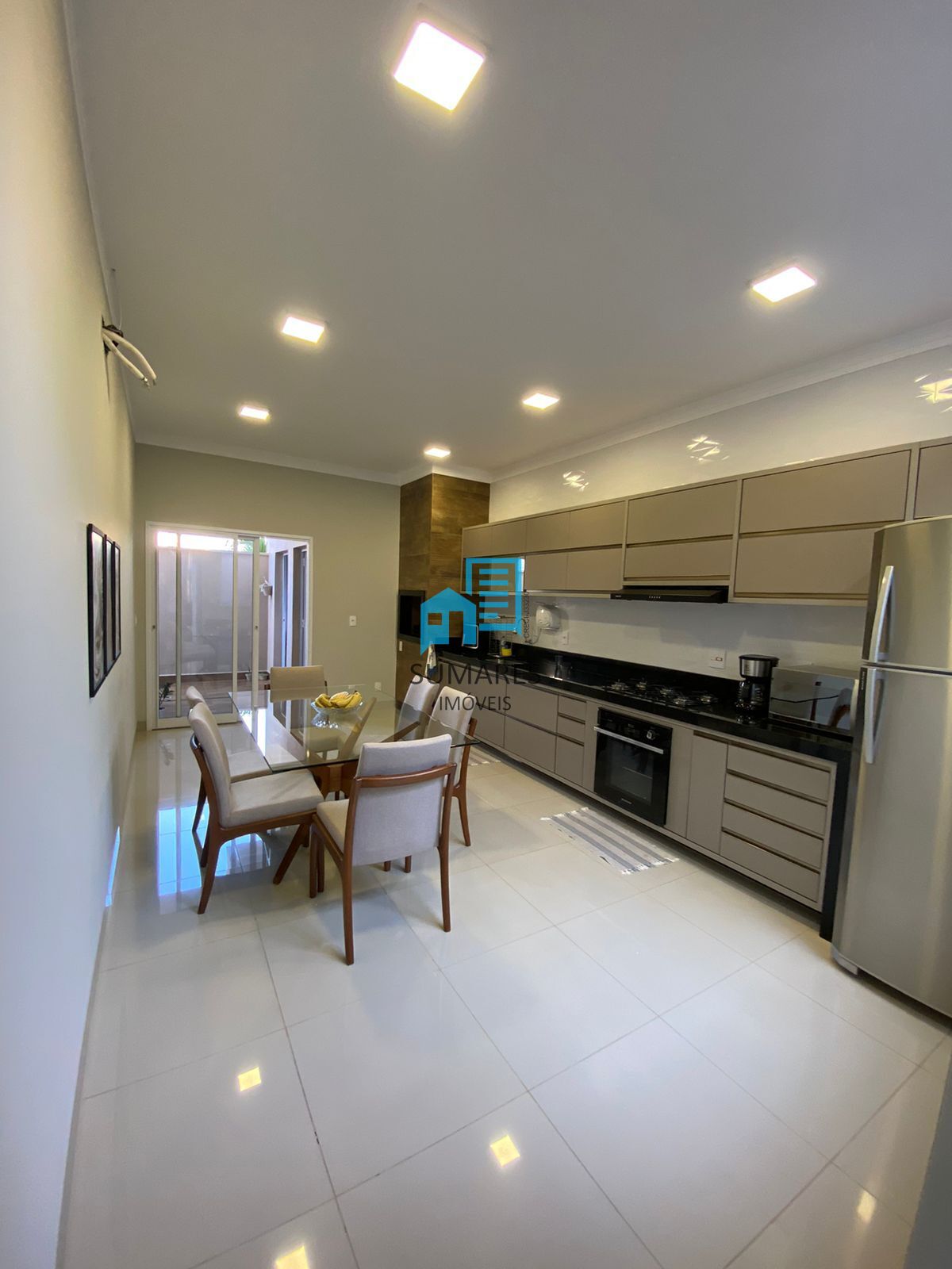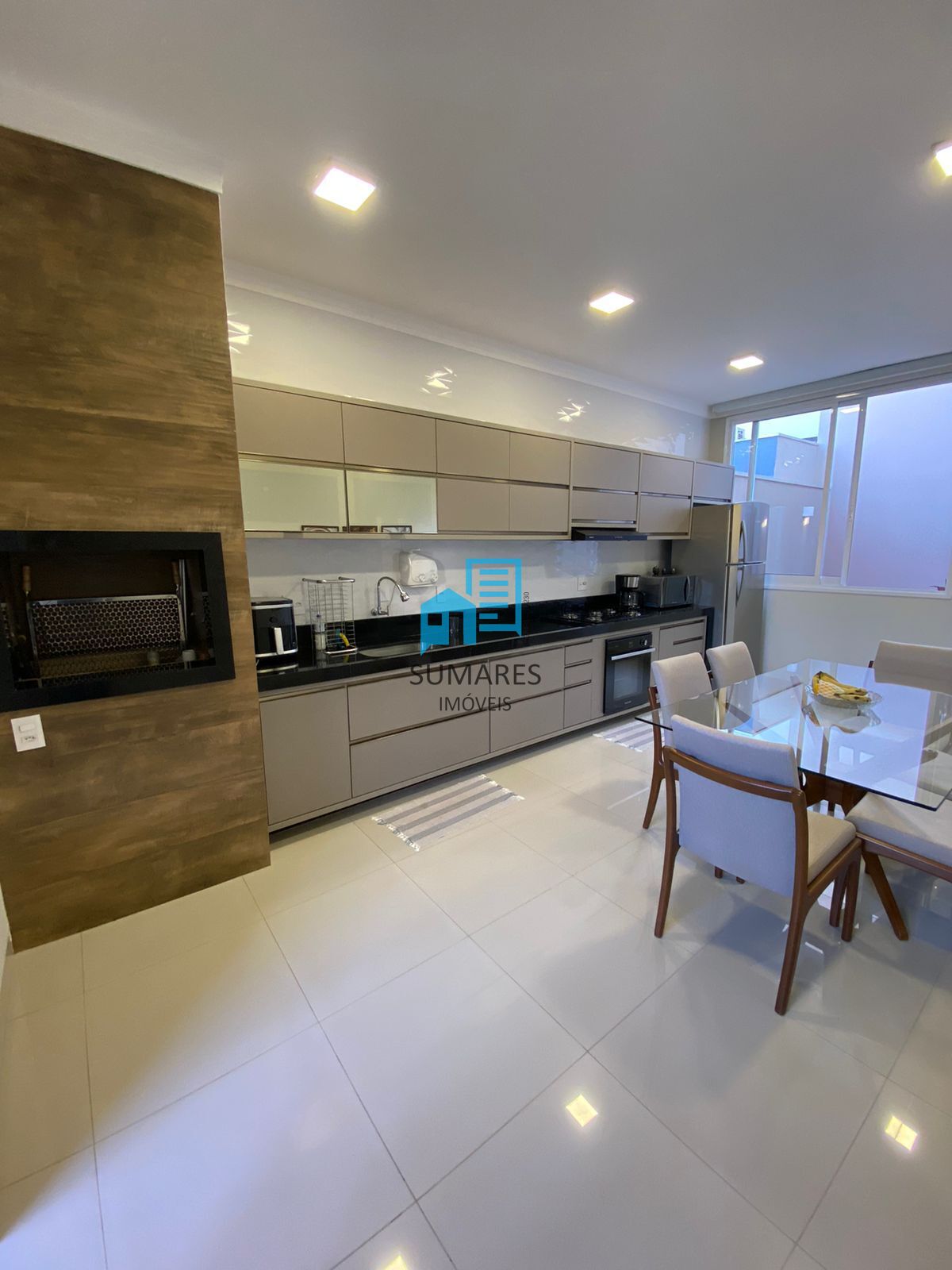 3 dormitórios sendo 1 suite, banheiro social, sala ampla, lavabo, cozinha integrada área gourmet com cooktop, coifa, churrasqueira, lavanderia fechada, garagem com 4 vagas, com aquecimento nas torneiras, rica em armários!