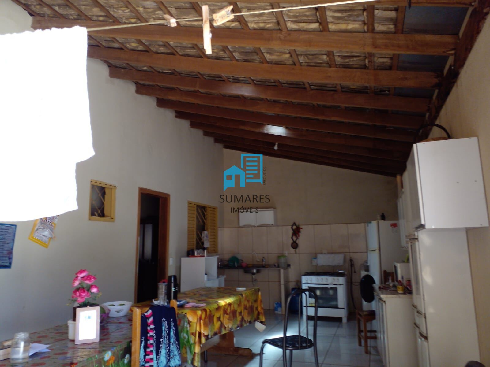 Casa com 4 quartos, 3 banheiros , 2 cozinhas, 1 sala, garagem para dois carros e moto.
